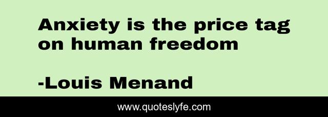 This page presents the quote "Anxiety is the price tag on human freedom". Author of this quote is Louis Menand. This quote is about freedom, anxiety,.