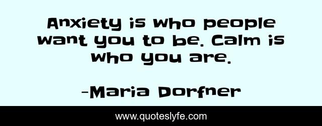 This page presents the quote "Anxiety is who people want you to be. Calm is who you are.". Author of this quote is Maria Dorfner. .