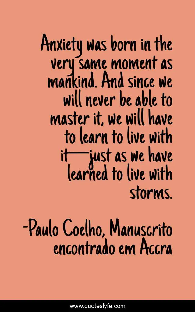 This page presents the quote "Anxiety was born in the very same moment as mankind. And since we will never be able to master it, we will have to learn to live with it—just as we have learned to live with storms.". Author of this quote is Paulo Coelho, Manuscrito encontrado em Accra. .