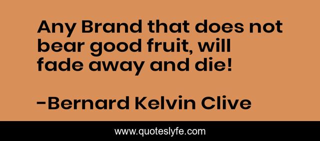 This page presents the quote "Any Brand that does not bear good fruit, will fade away and die!". Author of this quote is Bernard Kelvin Clive. This quote is about personal-branding, brand, biblical-branding, branding,.