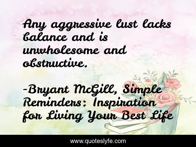 "Bryant McGill, Simple Reminders: Inspiration for Living Your Best Life Quotes." Quoteslyfe.com, 2025. Mon. 08 Dec. 2025. <https://www.quoteslyfe.com/quote/Any-aggressive-lust-lacks-balance-and-is-252218>.