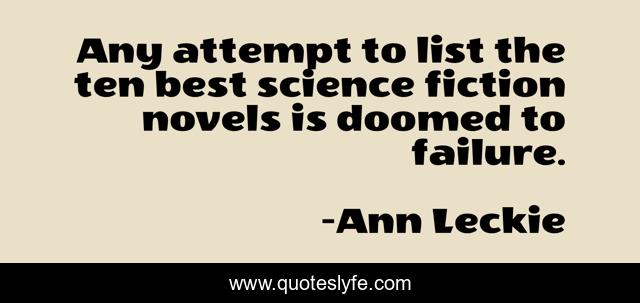 This page presents the quote "Any attempt to list the ten best science fiction novels is doomed to failure.". Author of this quote is Ann Leckie. This quote is about science, best, fiction,.