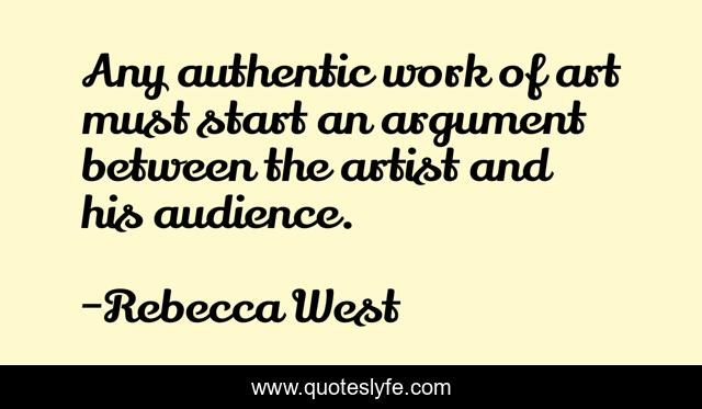 This page presents the quote "Any authentic work of art must start an argument between the artist and his audience.". Author of this quote is Rebecca West. This quote is about start, work, artist,.