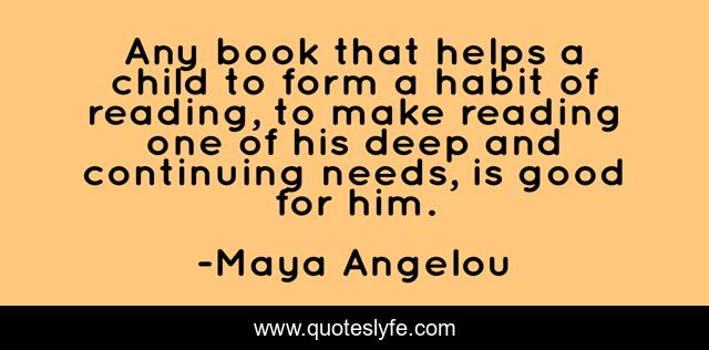 This page presents the quote "Any book that helps a child to form a habit of reading, to make reading one of his deep and continuing needs, is good for him.". Author of this quote is Maya Angelou. This quote is about enthusiasm, books, inspirational, library,.