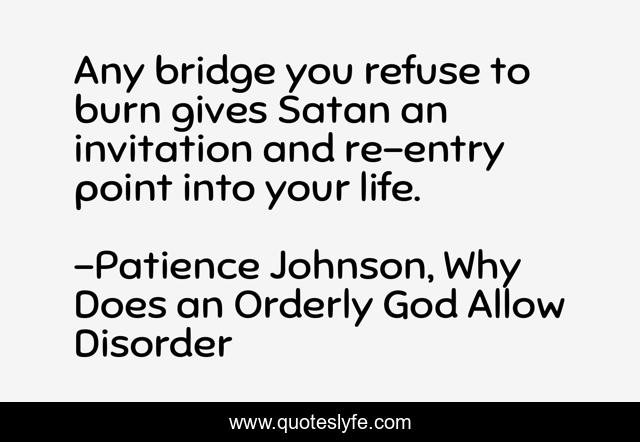 "Patience Johnson, Why Does an Orderly God Allow Disorder Quotes." Quoteslyfe.com, 2025. Mon. 08 Dec. 2025. <https://www.quoteslyfe.com/quote/Any-bridge-you-refuse-to-burn-gives-45913>.