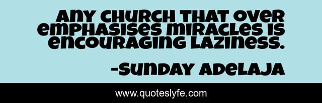 This page presents the quote "Any church that over emphasises miracles is encouraging laziness.". Author of this quote is Sunday Adelaja. This quote is about miracles, laziness-encouragement, emphasis, miracle, church,.