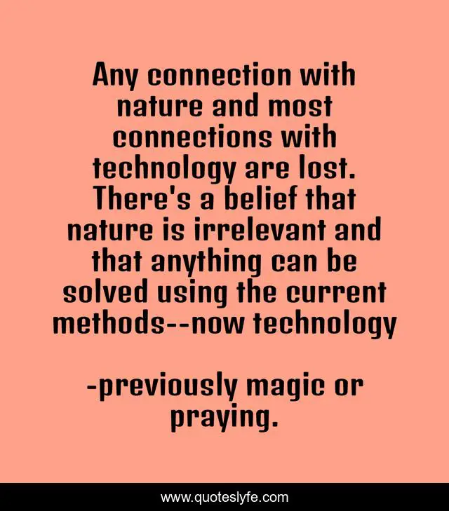 "previously magic or praying. Quotes." Quoteslyfe.com, 2025. Sat. 06 Dec. 2025. <https://www.quoteslyfe.com/quote/Any-connection-with-nature-and-most-connections-111393>.