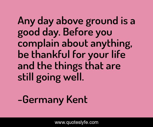 "Germany Kent Quotes." Quoteslyfe.com, 2025. Fri. 05 Dec. 2025. <https://www.quoteslyfe.com/quote/Any-day-above-ground-is-a-good-17408>.