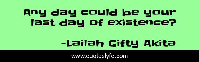 This page presents the quote "Any day could be your last day of existence?". Author of this quote is Lailah Gifty Akita. This quote is about living, inspiring, death, christian, life, daily-life, sick-bed,.