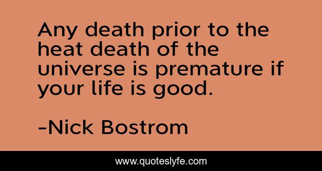 "Nick Bostrom Quotes." Quoteslyfe.com, 2025. Tue. 09 Dec. 2025. <https://www.quoteslyfe.com/quote/Any-death-prior-to-the-heat-death-169760>.