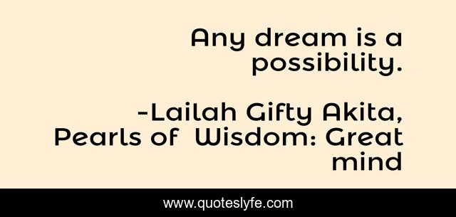 "Lailah Gifty Akita, Pearls of Wisdom: Great mind Quotes." Quoteslyfe.com, 2025. Sat. 06 Dec. 2025. <https://www.quoteslyfe.com/quote/Any-dream-is-a-possibility-85195>.