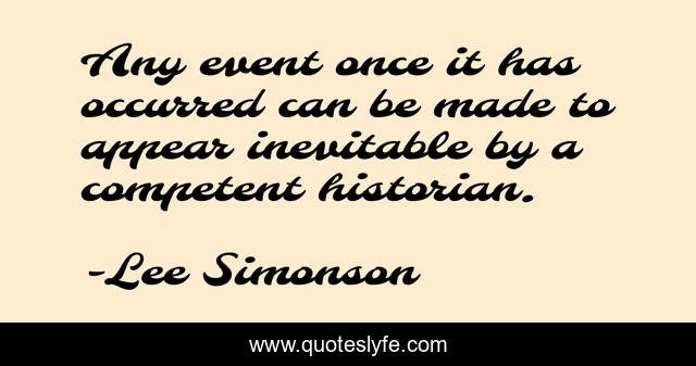 This page presents the quote "Any event once it has occurred can be made to appear inevitable by a competent historian.". Author of this quote is Lee Simonson. This quote is about historians, history,.