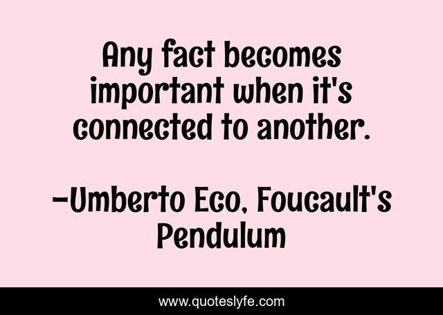 "Umberto Eco, Foucault's Pendulum Quotes." Quoteslyfe.com, 2025. Sun. 07 Dec. 2025. <https://www.quoteslyfe.com/quote/Any-fact-becomes-important-when-it-s-100362>.