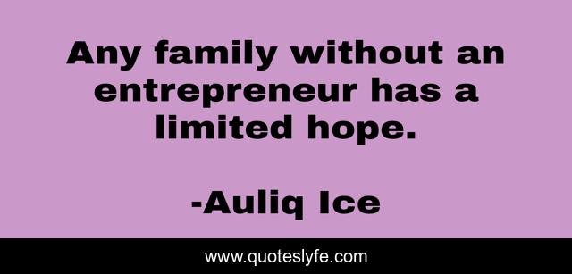This page presents the quote "Any family without an entrepreneur has a limited hope.". Author of this quote is Auliq Ice. This quote is about business, entrepreneurship,.