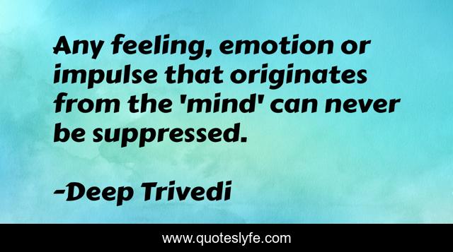 This page presents the quote "Any feeling, emotion or impulse that originates from the 'mind' can never be suppressed.". Author of this quote is Deep Trivedi. This quote is about deep-trivedi, mind, emotions, feelings, brain, i-am-the-mind, express-your-mind,.