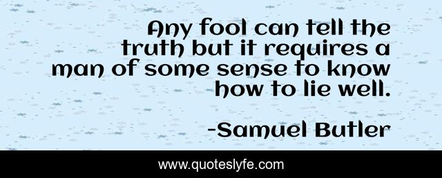 This page presents the quote "Any fool can tell the truth but it requires a man of some sense to know how to lie well.". Author of this quote is Samuel Butler. .