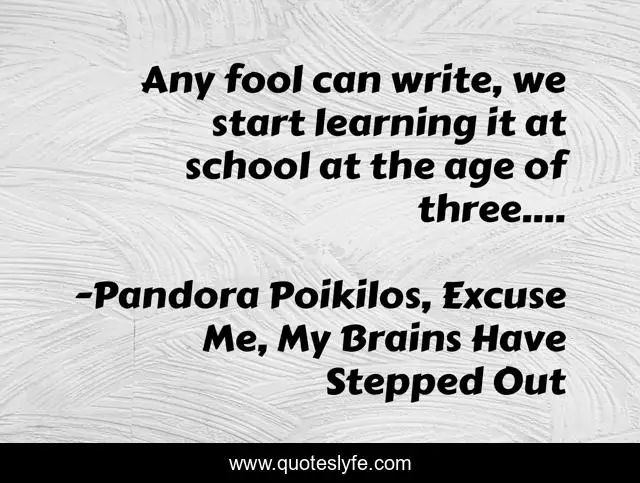"Pandora Poikilos, Excuse Me, My Brains Have Stepped Out Quotes." Quoteslyfe.com, 2025. Sat. 06 Dec. 2025. <https://www.quoteslyfe.com/quote/Any-fool-can-write-we-start-learning-27600>.
