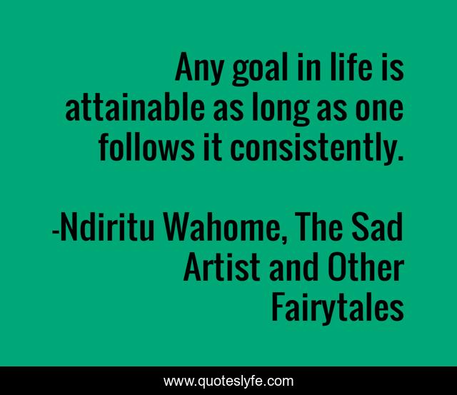 This page presents the quote "Any goal in life is attainable as long as one follows it consistently.". Author of this quote is Ndiritu Wahome, The Sad Artist and Other Fairytales. This quote is about life-philosophy, goal, passionate-life,.