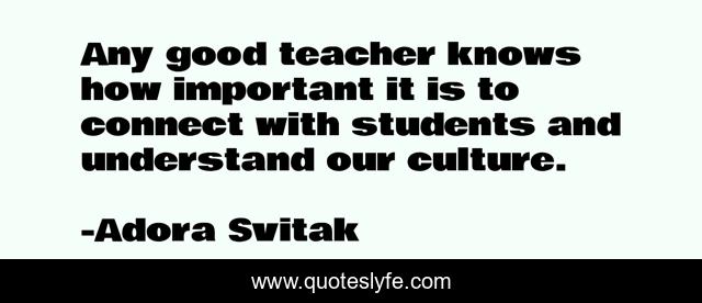 This page presents the quote "Any good teacher knows how important it is to connect with students and understand our culture.". Author of this quote is Adora Svitak. This quote is about culture, good, good teacher,.