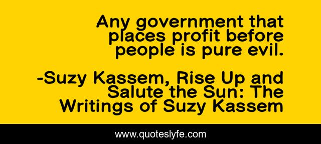 "Suzy Kassem, Rise Up and Salute the Sun: The Writings of Suzy Kassem Quotes." Quoteslyfe.com, 2025. Tue. 09 Dec. 2025. <https://www.quoteslyfe.com/quote/Any-government-that-places-profit-before-people-51856>.