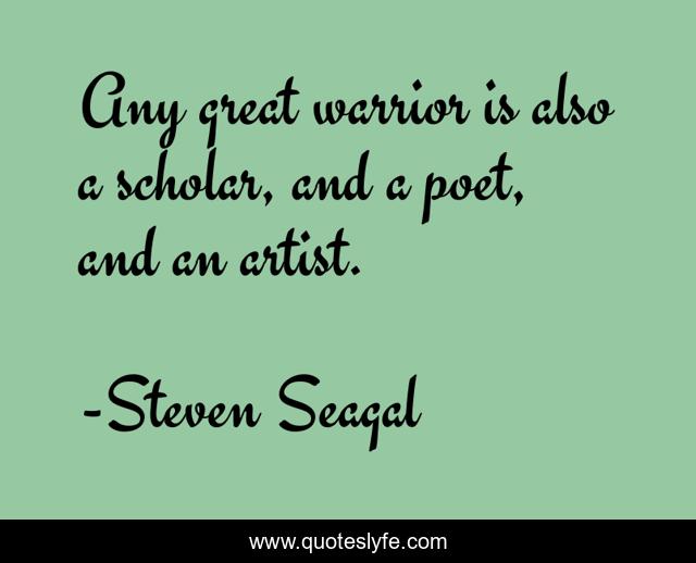 This page presents the quote "Any great warrior is also a scholar, and a poet, and an artist.". Author of this quote is Steven Seagal. This quote is about warrior, scholar, artist,.