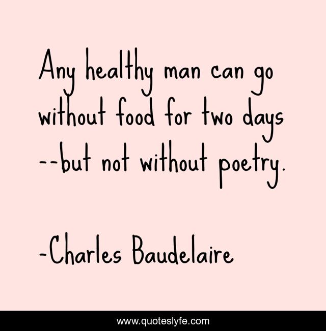 "Charles Baudelaire Quotes." Quoteslyfe.com, 2025. Fri. 05 Dec. 2025. <https://www.quoteslyfe.com/quote/Any-healthy-man-can-go-without-food-24783>.