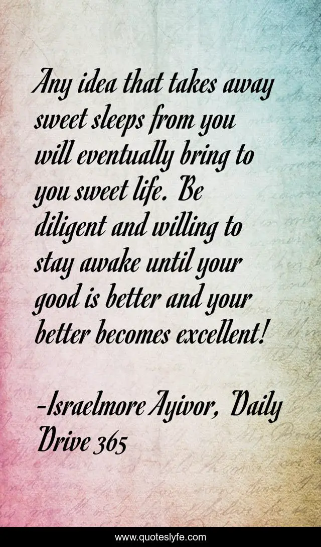 "Israelmore Ayivor, Daily Drive 365 Quotes." Quoteslyfe.com, 2025. Fri. 05 Dec. 2025. <https://www.quoteslyfe.com/quote/Any-idea-that-takes-away-sweet-sleeps-129238>.