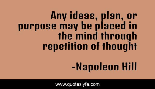 This page presents the quote "Any ideas, plan, or purpose may be placed in the mind through repetition of thought". Author of this quote is Napoleon Hill. This quote is about personal-development, inspiration,.