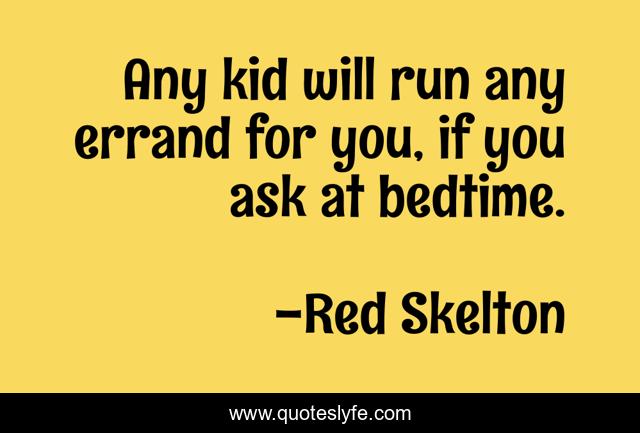 This page presents the quote "Any kid will run any errand for you, if you ask at bedtime.". Author of this quote is Red Skelton. This quote is about run, kid,.