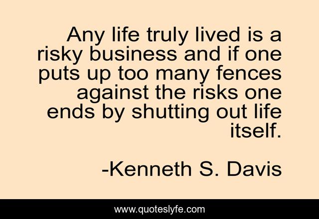 This page presents the quote "Any life truly lived is a risky business and if one puts up too many fences against the risks one ends by shutting out life itself.". Author of this quote is Kenneth S. Davis. .