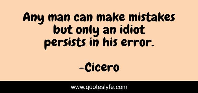 This page presents the quote "Any man can make mistakes but only an idiot persists in his error.". Author of this quote is Cicero. This quote is about failures, mistakes,.