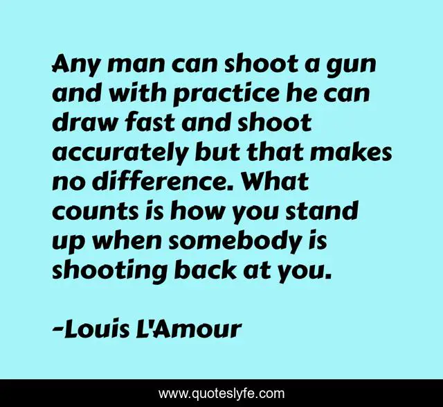 This page presents the quote "Any man can shoot a gun and with practice he can draw fast and shoot accurately but that makes no difference. What counts is how you stand up when somebody is shooting back at you.". Author of this quote is Louis L'Amour. .