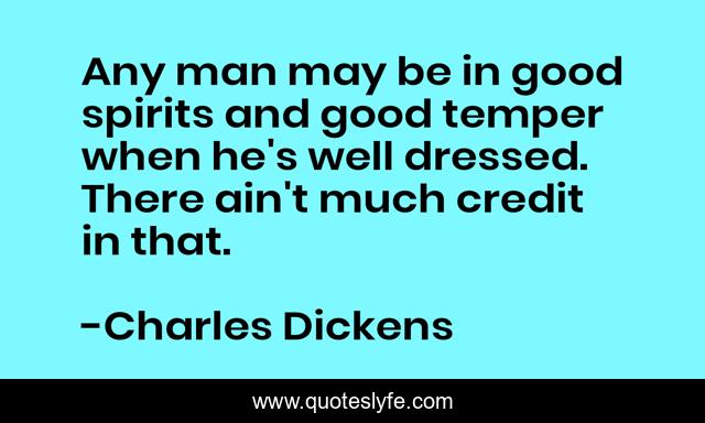 This page presents the quote "Any man may be in good spirits and good temper when he's well dressed. There ain't much credit in that.". Author of this quote is Charles Dickens. This quote is about personal, appearance,.