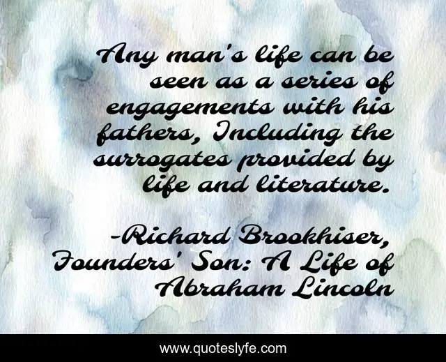 This page presents the quote "Any man's life can be seen as a series of engagements with his fathers, Including the surrogates provided by life and literature.". Author of this quote is Richard Brookhiser, Founders' Son: A Life of Abraham Lincoln. This quote is about parenthood, culture, legacy,.