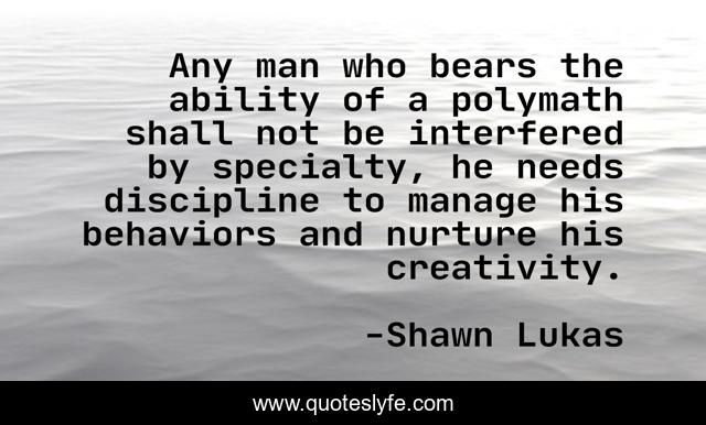 Any man who bears the ability of a polymath shall not be interfered by specialty, he needs discipline to manage his behaviors and nurture his creativity.