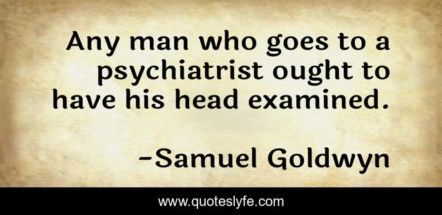 This page presents the quote "Any man who goes to a psychiatrist ought to have his head examined.". Author of this quote is Samuel Goldwyn. This quote is about head, man, psychiatrist,.