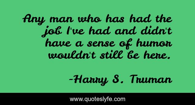 This page presents the quote "Any man who has had the job I've had and didn't have a sense of humor wouldn't still be here.". Author of this quote is Harry S. Truman. .