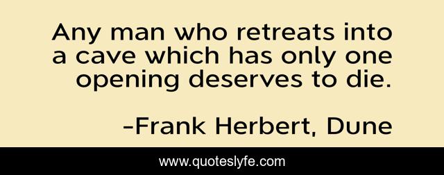 "Frank Herbert, Dune Quotes." Quoteslyfe.com, 2025. Sun. 07 Dec. 2025. <https://www.quoteslyfe.com/quote/Any-man-who-retreats-into-a-cave-63908>.