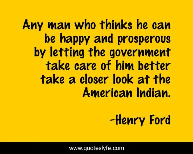 This page presents the quote "Any man who thinks he can be happy and prosperous by letting the government take care of him better take a closer look at the American Indian.". Author of this quote is Henry Ford. This quote is about politics, native-americans,.