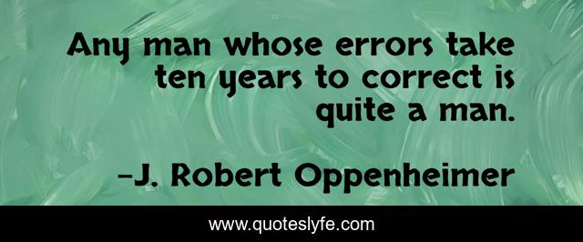 This page presents the quote "Any man whose errors take ten years to correct is quite a man.". Author of this quote is J. Robert Oppenheimer. This quote is about failures, mistakes,.