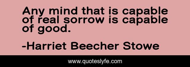 This page presents the quote "Any mind that is capable of real sorrow is capable of good.". Author of this quote is Harriet Beecher Stowe. This quote is about sorrow, good, mind,.