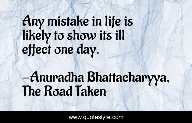 "Anuradha Bhattacharyya, The Road Taken Quotes." Quoteslyfe.com, 2025. Sat. 06 Dec. 2025. <https://www.quoteslyfe.com/quote/Any-mistake-in-life-is-likely-to-224555>.