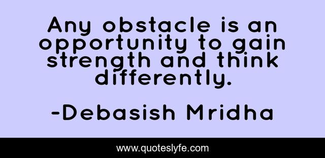 This page presents the quote "Any obstacle is an opportunity to gain strength and think differently.". Author of this quote is Debasish Mridha. This quote is about gain-strength, think-differently, philosophy, debasish-mridha, debasish-mridha-m-d, quotes, inspirational, enthusiasm, obstacles-in-life,.