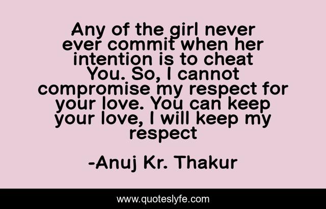 This page presents the quote "Any of the girl never ever commit when her intention is to cheat You. So, I cannot compromise my respect for your love. You can keep your love, I will keep my respect". Author of this quote is Anuj Kr. Thakur. This quote is about enthusiasm, reality, negative-love, inspirational, yourself,.