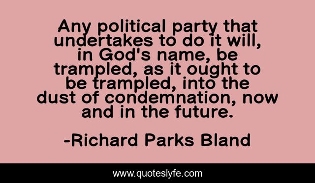 This page presents the quote "Any political party that undertakes to do it will, in God's name, be trampled, as it ought to be trampled, into the dust of condemnation, now and in the future.". Author of this quote is Richard Parks Bland. This quote is about god, political, party,.