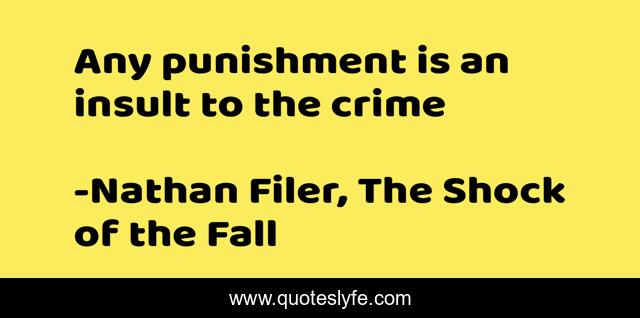 This page presents the quote "Any punishment is an insult to the crime". Author of this quote is Nathan Filer, The Shock of the Fall. This quote is about mentall-illness, punishement, crime, words, wisdom,.