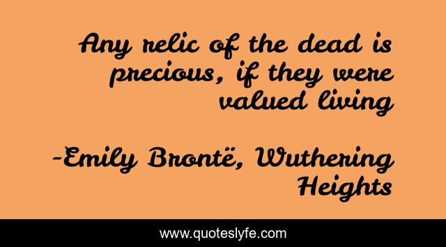"Emily Brontë, Wuthering Heights Quotes." Quoteslyfe.com, 2025. Sun. 07 Dec. 2025. <https://www.quoteslyfe.com/quote/Any-relic-of-the-dead-is-precious-226659>.