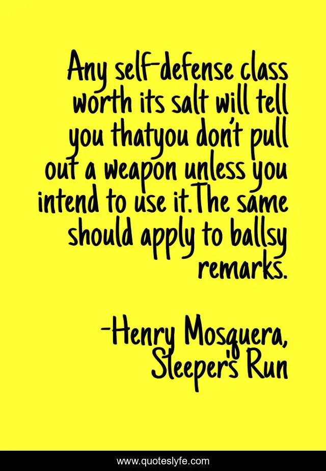 "Henry Mosquera, Sleeper's Run Quotes." Quoteslyfe.com, 2025. Mon. 08 Dec. 2025. <https://www.quoteslyfe.com/quote/Any-self-defense-class-worth-its-salt-22243>.