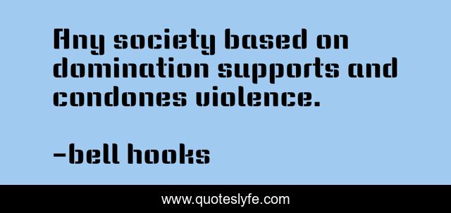 This page presents the quote "Any society based on domination supports and condones violence.". Author of this quote is bell hooks. This quote is about violence, supports,.