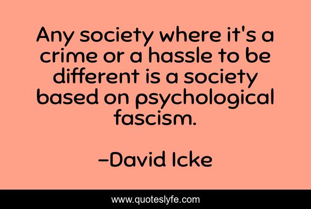 This page presents the quote "Any society where it's a crime or a hassle to be different is a society based on psychological fascism.". Author of this quote is David Icke. This quote is about be different, crime,.